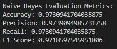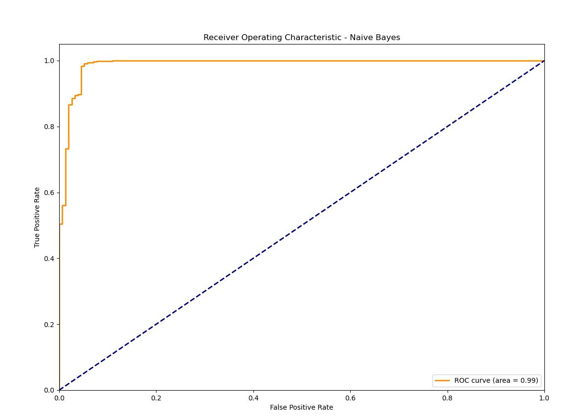 ROC Plot: The ROC curve of the Naive Bayes model actually gives a higher AUC than the Logistic Regression model, and so it is marginally better at differentiating spam and ham. The capability of applying text classification through this approach is largely attributable to that assumption of feature independence. Naive Bayes achieves the best results and outperforms Logistic Regression slightly in all metrics, which is evidence of its ability to classify texts correctly, especially due to it assuming the independency of features.