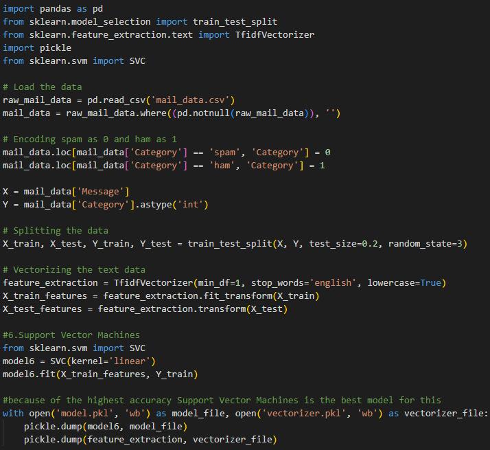 - Web Application Development: Using Flask to build a web interface that allows users to input email text and classify it as spam or legitimate.