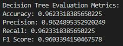 ROC Plot: It has a good ROC curve, with the AUC being not as good as some other models. This might indicate a satisfactory but not outstanding result: maybe a decision boundary could be too simple or the network overfits. The decision tree model is a robust model that is both accurate and generalizes well. Hence, this model somewhat slackens its performance in comparison with others, maybe because of overfitting or the simplicity of the decision boundaries.